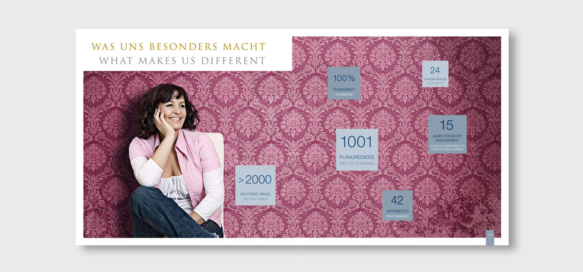 Produkte: Prospekte, Imagebroschüre, Bauschild Leistung: Entwicklung CD, Konzept, Umsetzung, Bildbearbeitung & RZ, Druckabwicklung